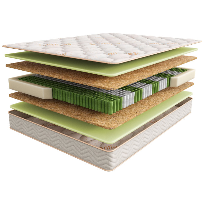- Экологичные антибактериальные наполнители обладают абсорбирующими и антисептическими свойствами, помогают сохранять здоровый микроклимат внутри матраса.