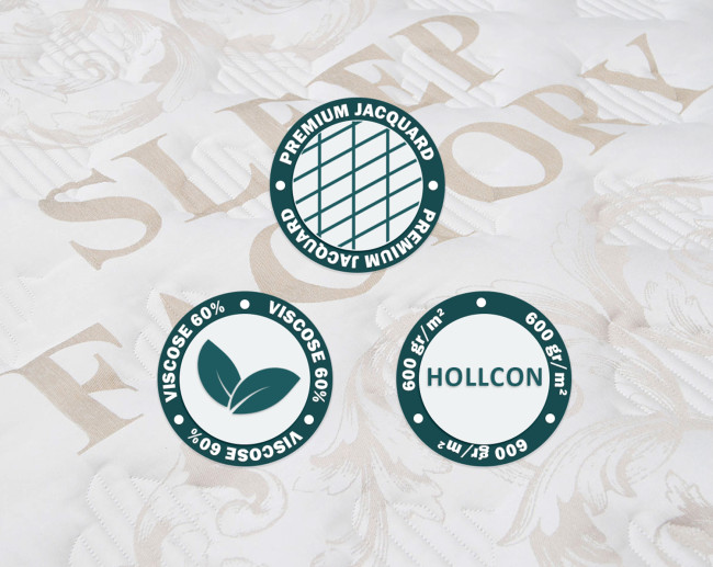 Чехол выполнен из прочной, приятной на ощупь, износостойкой жаккардовой ткани с вискозой (60%),простеганной на объемном холконе 600гр в сочетании с вязкоэластичной пеной. Благодаря чему вматрасе создается дополнительный анатомический слой, продлевается срок эксплуатации, изделиеприобретает неповторимый внешний вид. -