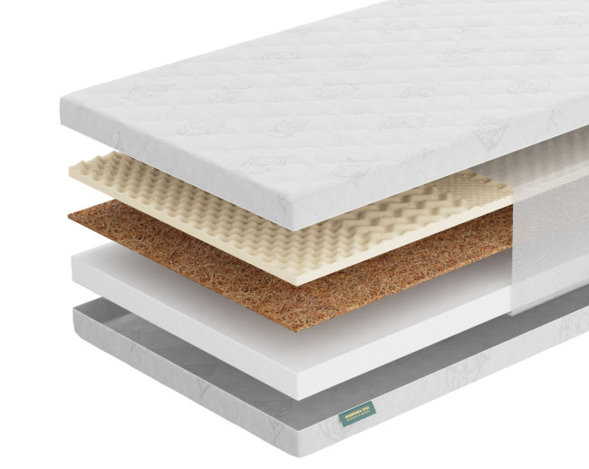 Кокосовая койра придаёт необходимую жесткость матрасу, а натуральный латекс в свою очередь смягчает поверхность, делая её сбалансированной и комфортной для здорового сна ребёнка.