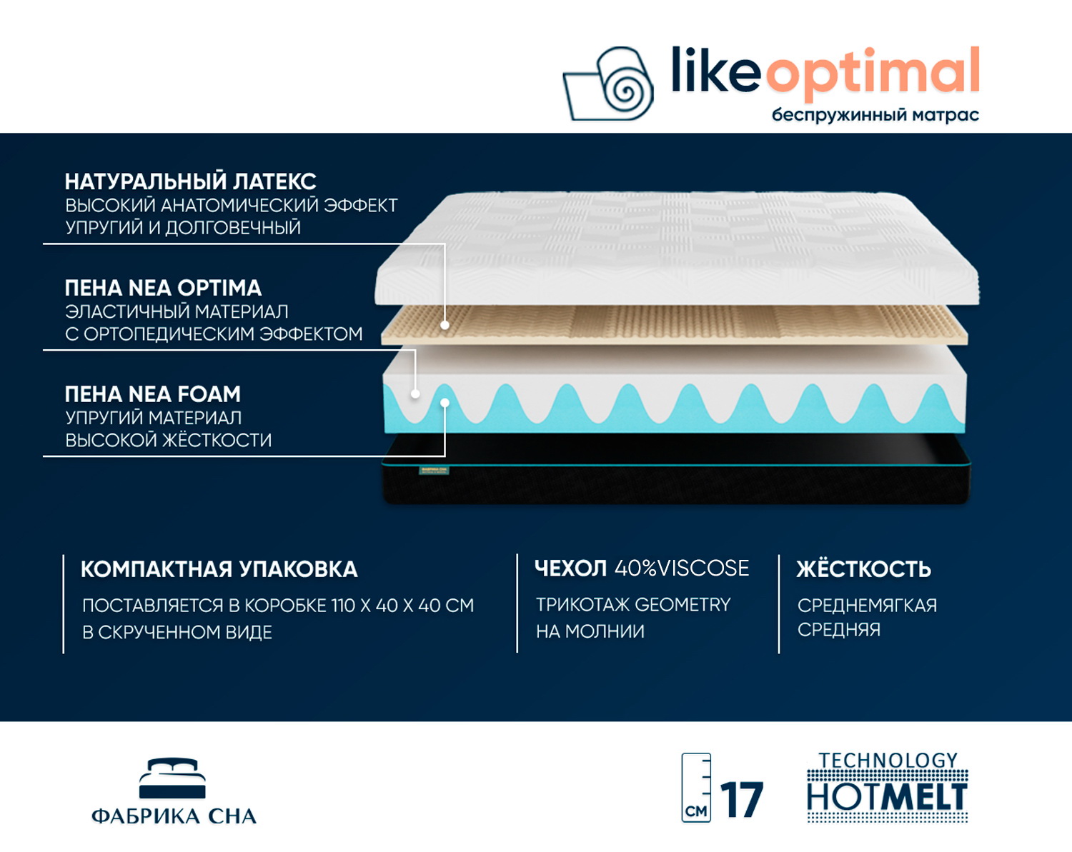 Матрас Like Optimal - это беспружинный матрас с натуральным массажным латексом.