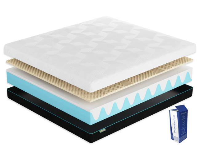 Модель двусторонняя, высотой 17 см. Стороны отличаются по жесткости незначительно - есть средняя и среднемягкая.