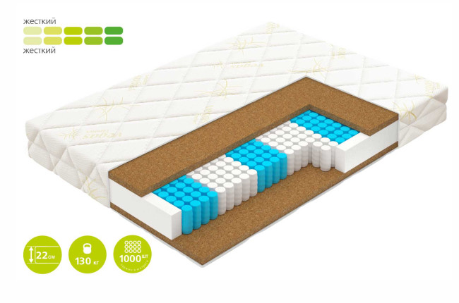 Самая жесткая модель в коллекции. Плиты кокосовой койры с обеих сторон матраса для тех, кто предпочитает простые и надежные конструкции. Матрас комфортной жесткости для здорового сна.
