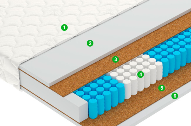 Натуральный материал из спрессованных волокон кокосового ореха, пропитанных латексом. Используется для придания матрасу жесткости.