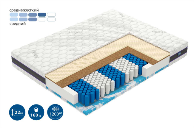 Востребованная модель среди людей, испытывающих высокие эмоциональные и физические нагрузки. Отличное сочетание жесткости и упругости делают этот матрас беспроигрышным вариантом по степени комфорта.