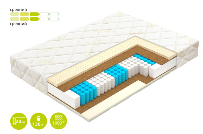 Универсальная модель для тех, кто ищет компромисс между жесткостью и мягкостью. Идеальный баланс латекса, кокоса и пружинного блока обеспечит максимальное удобство сна.