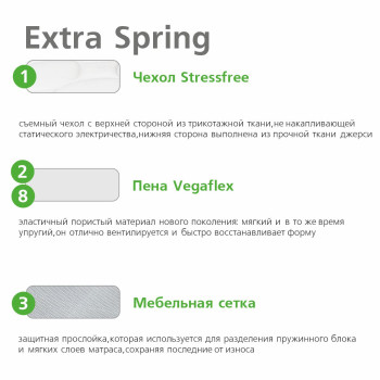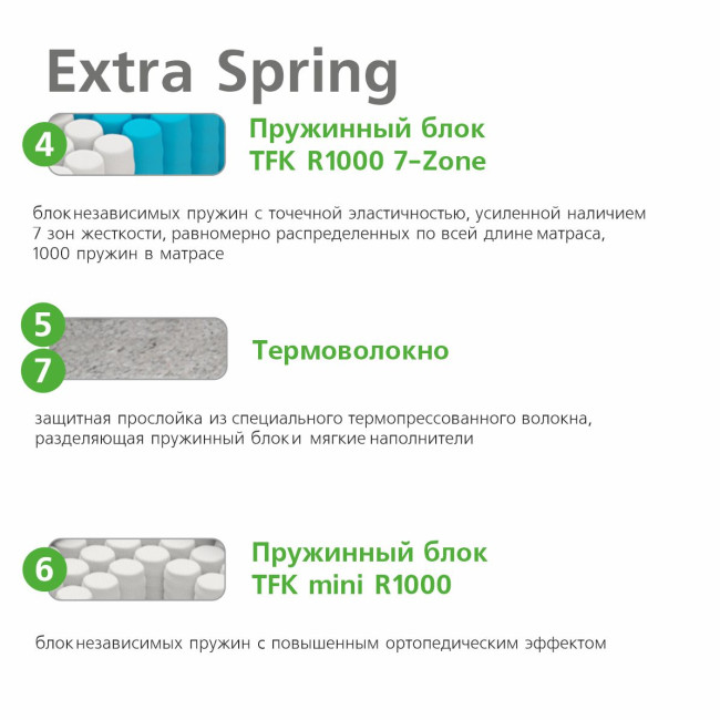 Блок независимых пружин с 7 зонами поддержки спящего принесёт истинное наслаждение от сна для тех, кому важен выраженный ортопедический эффект. Точечная эластичность блока усилена благодаря наличию 7 зон жёсткости, равномерно распределенных по всей длине матраса. Диаметр пружины 60 мм, высота 140 мм. -