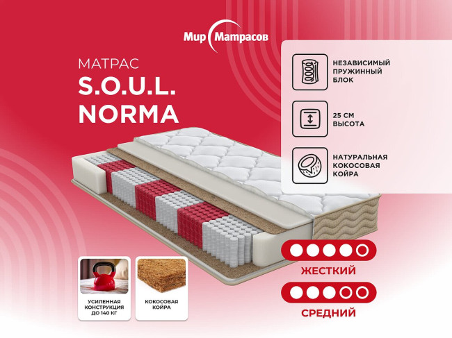Все модели матрасов коллекции S.O.U.L. выполнены с применением эксклюзивных материалов: мягкий и тёплый велюр в сочетании с высококачественным трикотажем дарит матрасу шикарный внешний вид. Приятная мягкая цветовая гамма делает матрас уютным и, по-настоящему, «домашним» Отличительной чертой, а также неоспоримым преимуществом матрасов S.O.U.L. является высота, доходящая до 25 сантиметров.