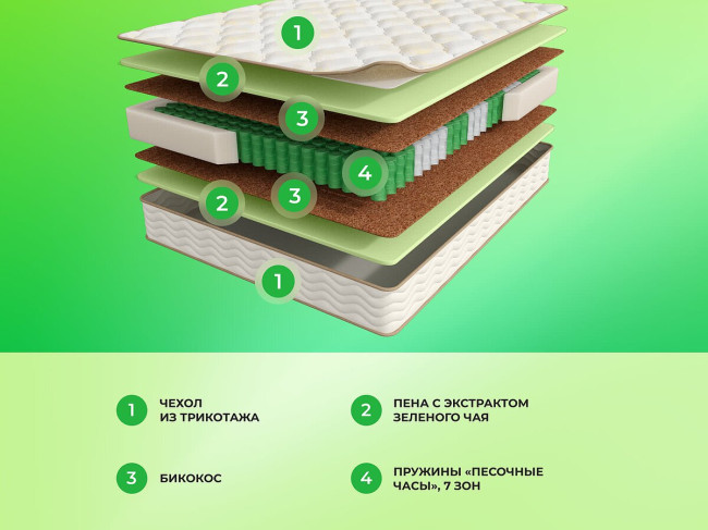 Fitness 7-Zone4Независимый пружинный блок "песочные часы" Fitness 7zoned. Независимые пружины в индивидуальный мешочках чутко реагируют на нагрузку в конкретной точке матраса Формула, создавая точечную поддержку позвоночника.