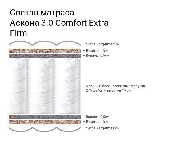- Матрас Askona 3.0 Comfort Extra Firm 80x190