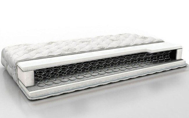 Двусторонний средне-мягкий матрас на основе зависимого пружинного блока «Bonnel». Он повторяет форму тела человека, не предоставляя большого сопротивления, и тем самым снимает вероятность возникновения болевых ощущений в пояснице и других отделах тела.