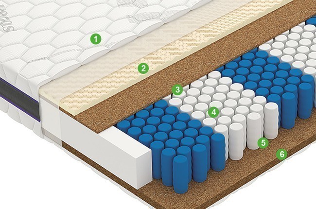 Кокосовая койра3Натуральный материал из спрессованных волокон кокосового ореха, пропитанных латексом. Используется для придания матрасу жесткости.