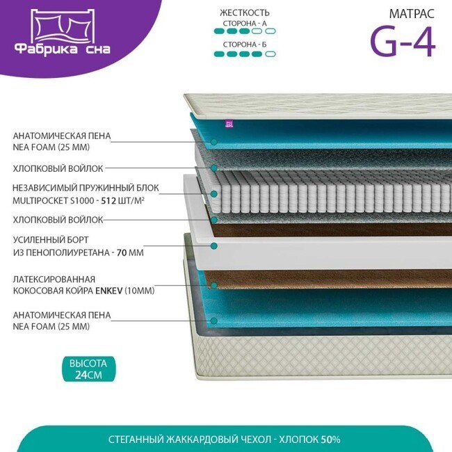 В матрасе с данным пружинным блоком, обеспечен повышенный ортопедический эффект, благодаря максимальной плотности размещения пружин – 512 пр/м2. -