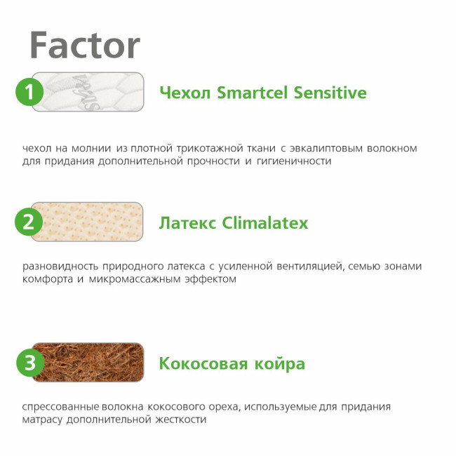 Натуральный материал из спрессованных волокон кокосового ореха, пропитанных латексом. Используется для придания матрасу жесткости.