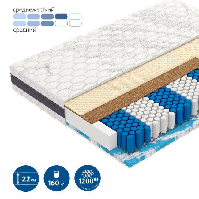 Востребованная модель среди людей, испытывающих высокие эмоциональные и физические нагрузки. Отличное сочетание жесткости и упругости делают этот матрас беспроигрышным вариантом по степени комфорта.