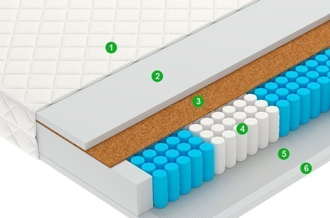 Кокосовая койра3Натуральный материал из спрессованных волокон кокосового ореха, пропитанных латексом. Используется для придания матрасу жесткости.