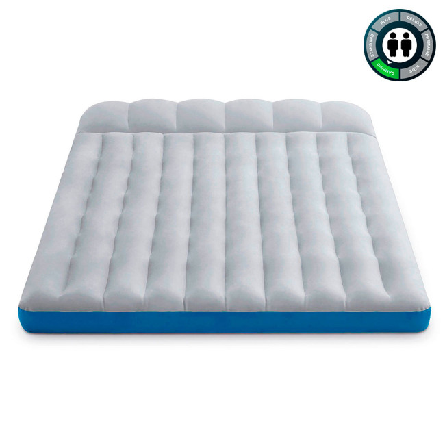 Надувной матрас Intex Camping — самое легкое, быстрое и недорогое решение для комфортного сна в путешествиях и на природе. Его верхний слой покрыт мягким флокированным материалом, который не дает постельному белью соскальзывать с матраса. Матрас легко чистится и является водонепроницаемым.